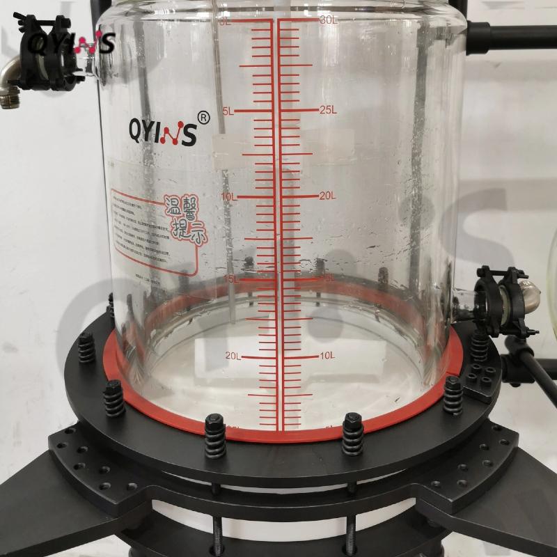 玻璃釜體夾套一包到底,使底部物料受熱更加均勻;過(guò)濾直徑加大,有效提高過(guò)濾速率。