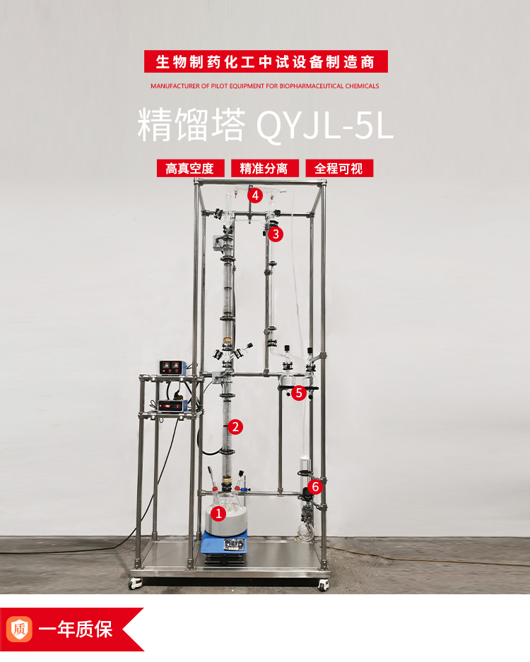 精餾柱分段控溫,中部設(shè)有取樣口和測溫口,通過調(diào)節(jié)各塔段溫度,滿足不同工藝對產(chǎn)品質(zhì)量的要求。