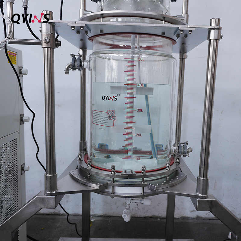 中試工藝線催化裝置固相釜(半自動)組合釜,可滿足多肽合成、裂解、沉降、活化,全套自動控溫。玻璃固相反應(yīng)釜以304不銹鋼管為框架,采用GG17高硼硅雙層玻璃釜體,配置PTFE過濾底板。-新材料行業(yè)適用